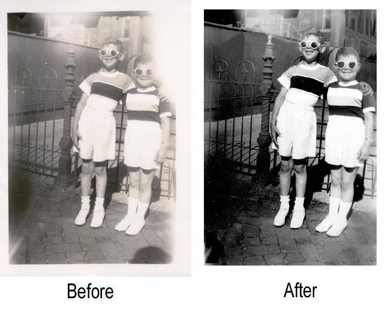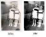 | EXTREME PHOTO RESTORATION Don't forget to check out Heavy and Light Restoration samples. Click on the images shown on this page to get an enlarged before and after view of the changes. Please note: These photos are lower quality versions of the originals, which may differ slightly, in order to make them load in your browser window as quickly as possible. Also, every monitor displays color differently, which may not reflect the actual colors of the restored photographs. Click on the images shown on this page to get an enlarged before and after view of the changes. |