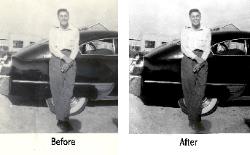 Click on the images shown on this page to get an enlarged before and after view of the changes. Please note: These photos are lower quality versions of the originals, which may differ slightly, in order to make them load in your browser window as quickly as possible. Also, every monitor displays color differently, which may not reflect the actual colors of the restored photographs.