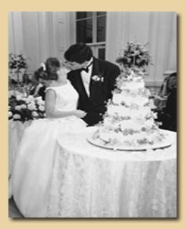 bridal and family dances, bouquet and garter tossing, cake cutting, toasts, and if possible, interviews with